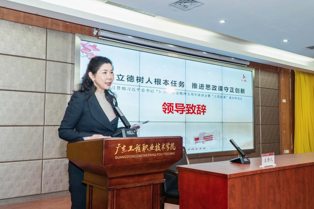 校黨委副書記、校長李麗教授在會(huì)上致辭。李校長強(qiáng)調(diào),五年來我校思政課建設(shè)及立德樹人各方面工作取得可喜成績和寶貴經(jīng)驗(yàn),學(xué)校將繼續(xù)深入貫徹習(xí)近平總書記“3.18”重要講話精神,強(qiáng)化理論武裝,守正創(chuàng)新,銳意進(jìn)取,全力保障和推動(dòng)馬克思主義學(xué)院建設(shè)和思政課高質(zhì)量發(fā)展,善用“大思政課”培育能工巧匠、大國工匠。