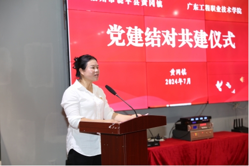 活動現(xiàn)場,學(xué)校與黃岡鎮(zhèn)進(jìn)行“黨建結(jié)對共建”簽約和揭牌儀式。沈吉蕊致歡迎辭,對我校的支持表示衷心的感謝,她認(rèn)為“百千萬工程”實施以來,學(xué)校師生積極響應(yīng)號召,深入基層,深入群眾,用實際行動服務(wù)地方發(fā)展,本次簽約和揭牌儀式代表了黃岡鎮(zhèn)與廣東工程職業(yè)技術(shù)學(xué)院在基層黨建、人才培養(yǎng)和產(chǎn)業(yè)發(fā)展方面開啟新篇章,希望學(xué)校充分發(fā)揮理論優(yōu)勢和專業(yè)資源,幫助黃岡鎮(zhèn)在基層黨建、產(chǎn)業(yè)發(fā)展、綠美鄉(xiāng)村、文化賦能、人才發(fā)展等方面謀思路、找出路、蹚新路,不斷探索新的合作模式和途徑,共同開創(chuàng)校地合作的新局面,推動“百千萬工程”往深里走、往實里走。佘細(xì)花表示將堅持平等協(xié)商、資源共享、優(yōu)勢互補(bǔ)、注重實效的原則,組織有關(guān)黨組織從黨建宣傳教育陣地共建、黨校教師雙培、鄉(xiāng)村振興實踐服務(wù)、百千萬工程突擊隊行動、新型鄉(xiāng)村人才培養(yǎng)、文旅資源保護(hù)利用、產(chǎn)業(yè)發(fā)展科技支撐等方面持續(xù)深化與黃岡鎮(zhèn)委合作交流的廣度和深度,建立健全長效互動機(jī)制,引領(lǐng)推動鄉(xiāng)村高質(zhì)量發(fā)展。
