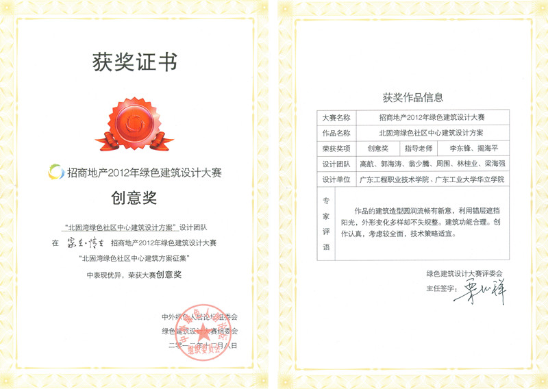 參賽作品榮獲2012年綠色建筑設(shè)計大賽"創(chuàng)意獎"