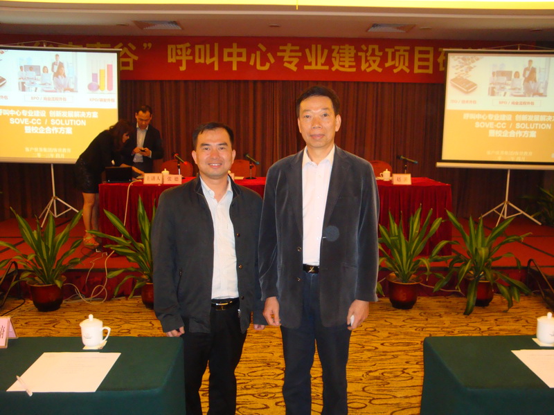 清遠(yuǎn)市市長助理貝冰則把"華南聲谷"的推進(jìn)情況作了詳細(xì)介紹,預(yù)計在未來2-3年將把清遠(yuǎn)打造成華南地區(qū)唯一的粵語、兼顧普通話及英語的呼叫中心,希望各院校能為"華南聲谷"培養(yǎng)并輸送人才,清遠(yuǎn)市將支持呼叫中心建設(shè),為運營提供專業(yè)的指導(dǎo),主動為各職業(yè)院校提供必要的幫助,殷切希望各合作職業(yè)院校做到"提高認(rèn)識,積極籌備"。會后,陳杰倫與CC-CMM國際標(biāo)準(zhǔn)指導(dǎo)委員會趙溪主席針對建設(shè)、項目合作等事宜交流了意見。