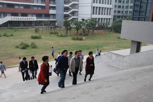 我院黨委書記劉文清,院長勞漢生,副院長胡艷曦、副書記李軍、副院級干部徐啟揚等學校領(lǐng)導以及有關(guān)部門負責人陪同王廳長一行參觀了校園和新圖書館等教學設(shè)施。在圖書館前,劉書記向王廳長一行介紹了我院目前準備的就業(yè)創(chuàng)業(yè)校園項目,在新圖書館王廳長詢問了學院建設(shè)等相關(guān)情況,對學院辦學成績給予肯定,希望學校挖掘、凝煉特色,打造自有品牌,進而辦出特色,擴大影響,拓寬思路,謀求更大發(fā)展。