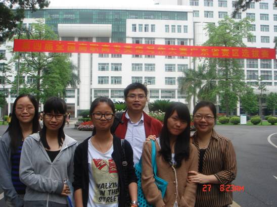 指導(dǎo)教師和參賽選手(左起:肖穎老師、鐘慧敏同學(xué)、麥暖同學(xué)、熊有生老師、陳麗苗同學(xué)、鐘潔玲老師)