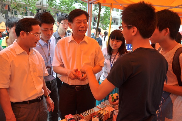 調研會結束以后,董書記一行還參觀了我院的社團文化展,在現(xiàn)場與各社團進行了親切互動,觀看了武術協(xié)會、魔方協(xié)會、書法協(xié)會等協(xié)會的演出。對我院學生社團的建設提出寶貴的建議。