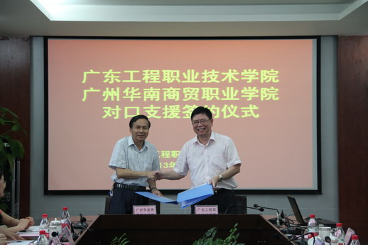 最后,我院勞漢生院長與張德?lián)P院長代表兩校共同簽訂了《廣東工程職業(yè)技術(shù)學(xué)院對口支援廣州華南商貿(mào)職業(yè)技術(shù)學(xué)院合作協(xié)議書》。根據(jù)《協(xié)議》,我院將在今后3年內(nèi),在教育教學(xué)管理、專業(yè)及課程建設(shè)、師資隊伍建設(shè)以及行政管理等方面實施對廣州華南商貿(mào)職業(yè)技術(shù)學(xué)院的支援與合作,以推動兩校相互促進(jìn),共同提高。