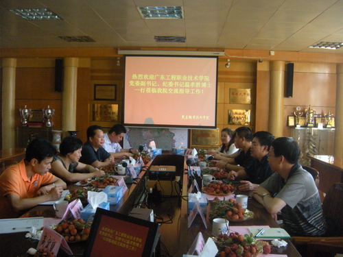 6月19日,到達(dá)陽江職業(yè)技術(shù)學(xué)院,受到了吳教育院長等的熱烈歡迎。陽江職院黨委副書記、紀(jì)委書記黃廣珠以及黨委辦、紀(jì)檢監(jiān)察審計(jì)室、人事處、工會(huì)等部門領(lǐng)導(dǎo)與我院一行進(jìn)行了座談。