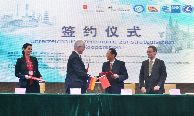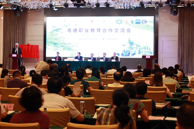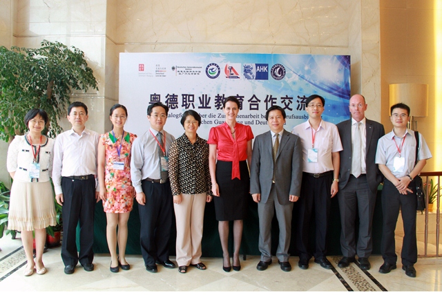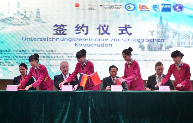 在教育部劉寶利巡視員和德國有關(guān)官員的見證下,廣東省教育廳、德國駐廣州總領(lǐng)事館和德國工商大會代表共同簽訂了《粵德職業(yè)教育合作備忘錄》,廣東省教育廳廳長羅偉其、廣東省教育研究院院長湯貞敏、德國工商大會上海代表處職業(yè)教育總監(jiān)白麗塔共同為"粵德職業(yè)教育合作推廣與發(fā)展研究中心"揭牌。這標(biāo)志著粵德職業(yè)教育合作進(jìn)入嶄新的階段,雙方合作從民間走向官方全面拓展,合作方式從零散無序朝著系統(tǒng)化、制度化、規(guī)范化方向發(fā)展。