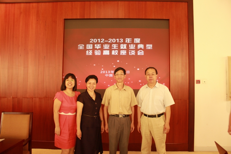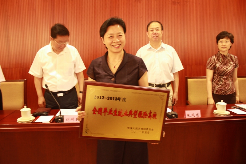 2013年6月26日,全國畢業(yè)生就業(yè)典型經(jīng)驗(yàn)高校座談會在北京召開。教育部副部長劉利民、高等教育司司長張大良、高校學(xué)生司副司長荊德剛、全國高等學(xué)校信息咨詢與就業(yè)指導(dǎo)中心主任張鳳有等教育部領(lǐng)導(dǎo)和總結(jié)宣傳工作領(lǐng)導(dǎo)小組成員、50所年度就業(yè)典型經(jīng)驗(yàn)高校及部分省市畢業(yè)生就業(yè)主管部門負(fù)責(zé)同志參加了會議。我院作為廣東省唯一此項(xiàng)榮譽(yù)高職院校參加了會議,劉文清書記代表學(xué)院上臺獲頒"2012-2013年度全國畢業(yè)生就業(yè)典型經(jīng)驗(yàn)高校"獎(jiǎng)牌。