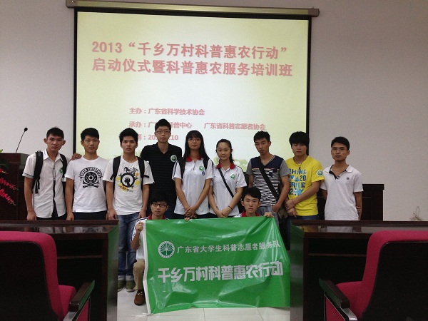 7月10日,由廣東省科學(xué)技術(shù)協(xié)會(huì)主辦,廣東省科普中心、廣東省科普志愿者協(xié)會(huì)承辦的2013"千鄉(xiāng)萬(wàn)村科普惠農(nóng)行動(dòng)"啟動(dòng)儀式暨科普惠農(nóng)服務(wù)培訓(xùn)班在華南師范大學(xué)五山校區(qū)舉行。中國(guó)工程院院士、廣東省科普志愿者協(xié)會(huì)會(huì)長(zhǎng)劉人懷,廣東省科學(xué)技術(shù)協(xié)會(huì)副主席吳煥泉,廣東省科學(xué)技術(shù)協(xié)會(huì)科普部黃善輝部長(zhǎng),廣東省財(cái)政廳教科文處副處長(zhǎng)饒偉強(qiáng)等出席了本次儀式。儀式由廣東省科普中心鄭文豐主任主持。我院志愿者代表參加了此次活動(dòng)。
