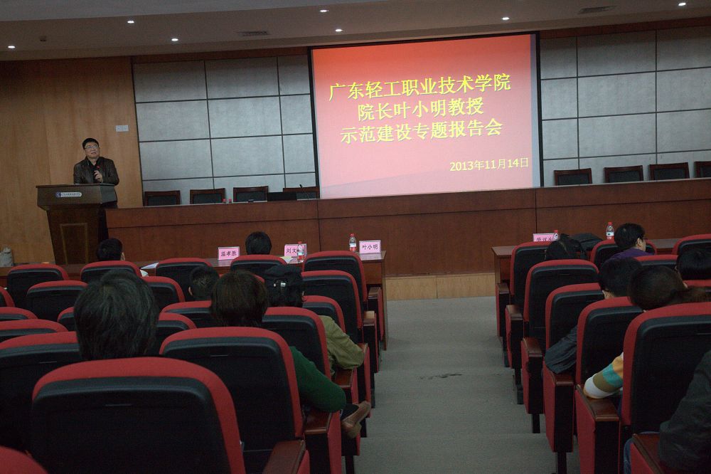 勞院長在主持講座的致辭中指出,廣東輕工職院是我們示范建設(shè)的學(xué)習(xí)榜樣,我們一定要去多學(xué)習(xí)、多交流,此次葉院長親臨講座,傳授示范建設(shè)的"秘訣",對推動我院示范建設(shè)有著非凡的指導(dǎo)意義,希望全體教職工同心同德,在黨委的正確領(lǐng)導(dǎo)下,結(jié)合我院實際情況,結(jié)各自的工作崗位,認(rèn)真學(xué)習(xí)兄弟院校的優(yōu)秀經(jīng)驗,為推動我院的示范建設(shè)作出更大的貢獻(xiàn)。