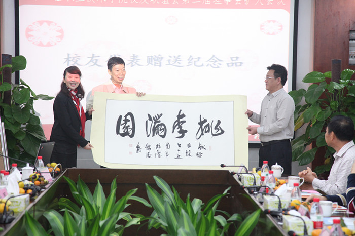 為了慶祝母校建校55周年,校友代表通過贈(zèng)送母校禮物表達(dá)了對(duì)母校的愛及感恩之情。八九屆校友向?qū)W校贈(zèng)送了他們親自設(shè)計(jì)制作的紀(jì)念品"雕 鑿",河源校友袁瑞強(qiáng)、廖懷志送了一份校慶紀(jì)念品,汕尾校友施錦濤把他的墨寶——一幅字畫"桃李滿園"獻(xiàn)給母校,學(xué)院領(lǐng)導(dǎo)欣喜地接受了禮物,感謝各地、各界校友對(duì)母校的情誼。校友聯(lián)誼會(huì)送給校友們的禮物是兩本紀(jì)念冊(cè),一本是名為《母校記憶》的校友回憶錄,一本是名為《培桃育李滿天下》的校友名錄,這也是送給母校55周年的生日禮物。接下來老校長何斌教授、湯少明教授談到了他們的感受和期望,他們感慨學(xué)院55年來創(chuàng)業(yè)的艱辛,祝愿并寄語學(xué)院的明天會(huì)更好!他們還對(duì)校友們提出了很高的期望,熱切地希望各位校友理事一如既往地關(guān)心和支持學(xué)院的建設(shè)與發(fā)展。校友聯(lián)誼會(huì)副會(huì)長,65屆工民建建筑學(xué)本科班陳中翰代表校友會(huì)理事發(fā)言,他表達(dá)了對(duì)母校培育的感激之情。他說,一界又一屆學(xué)子從母校身上汲取力量,走上了人生創(chuàng)業(yè)發(fā)展之路,今后無論身在何時(shí)、何地,都會(huì)始終牢記母校和老師們的諄諄教誨,不斷加強(qiáng)學(xué)習(xí)和歷練,不斷提高自己的道德素質(zhì)和職業(yè)能力,在各自的工作崗位上實(shí)現(xiàn)新的更大的人生價(jià)值,為母校爭光添彩。各地校友代表也做了發(fā)言。校友聯(lián)誼會(huì)會(huì)長陳杰倫副教授一直在指導(dǎo)校友聯(lián)誼會(huì)開展工作,他談到了對(duì)校友會(huì)工作的展望,他期望校友們?yōu)閷W(xué)校發(fā)展獻(xiàn)計(jì)、獻(xiàn)策、獻(xiàn)力,建言立論,共商辦學(xué)大計(jì),為學(xué)校繼往開來,再譜新篇,再作貢獻(xiàn)。