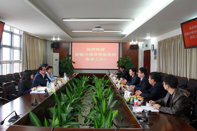 12月11日上午,省編辦主任潘享清、省編辦事業(yè)單位改革服務局局長周曉梅、省編辦事業(yè)單位改革服務局改革處主任科員蔡冰菲一行蒞臨我校調研指導。學校黨委書記劉文清、院長勞漢生、黨委副書記溫孝勝、黨委副書記李軍、副院長李艇等學校領導陪同調研并座談。