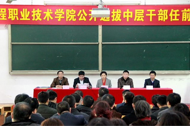 1月15日上午,我校在綜合樓102室召開公開選拔中層干部任前談話會,對公開選拔的中層干部進行集體談話。我校黨委書記劉文清,黨委副書記、院長勞漢生,黨委副書記、紀委書記溫孝勝,黨委副書記李軍,副校級干部徐啟揚出席了會議。溫孝勝副書記主持會議并宣讀中層干部任免名單。