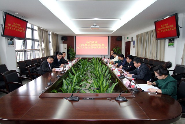 2月28日,TCL集團(tuán)高級(jí)副總裁史萬文先生一行來校考察。學(xué)校黨委書記劉文清,黨委副書記、紀(jì)委書記溫孝勝,副校長胡艷曦,副校級(jí)領(lǐng)導(dǎo)、創(chuàng)業(yè)學(xué)院院長徐啟揚(yáng)熱情接待了來賓一行并在607會(huì)議室召開座談會(huì)。會(huì)議由溫孝勝副書記主持,劉文清書記致歡迎辭。TCL集團(tuán)電子商務(wù)中心(惠州酷友網(wǎng)絡(luò)科技有限公司)總經(jīng)理劉文武、人力行政部部長馬俊、創(chuàng)業(yè)學(xué)院黎惠忠博士,辦公室有關(guān)負(fù)責(zé)人參加了座談會(huì)。