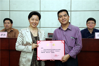 (劉文清書記為就業(yè)優(yōu)秀學院代表頒發(fā)榮譽證書)