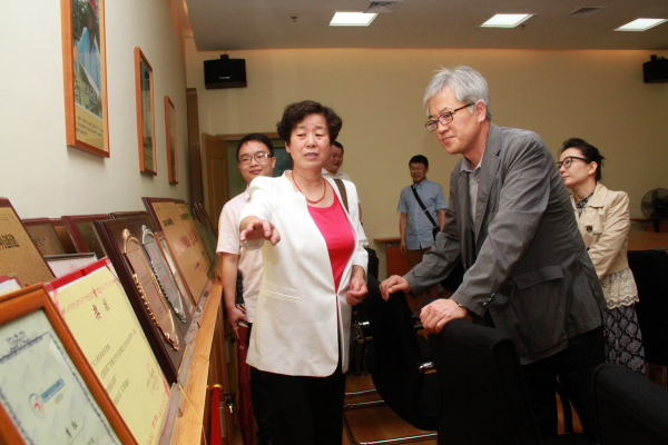 李權(quán)鎬一行還參觀了校史館、就業(yè)文化廣場(chǎng)、創(chuàng)業(yè)文化廣場(chǎng)、大學(xué)生就業(yè)服務(wù)中心、團(tuán)體指導(dǎo)室等。