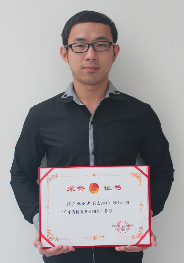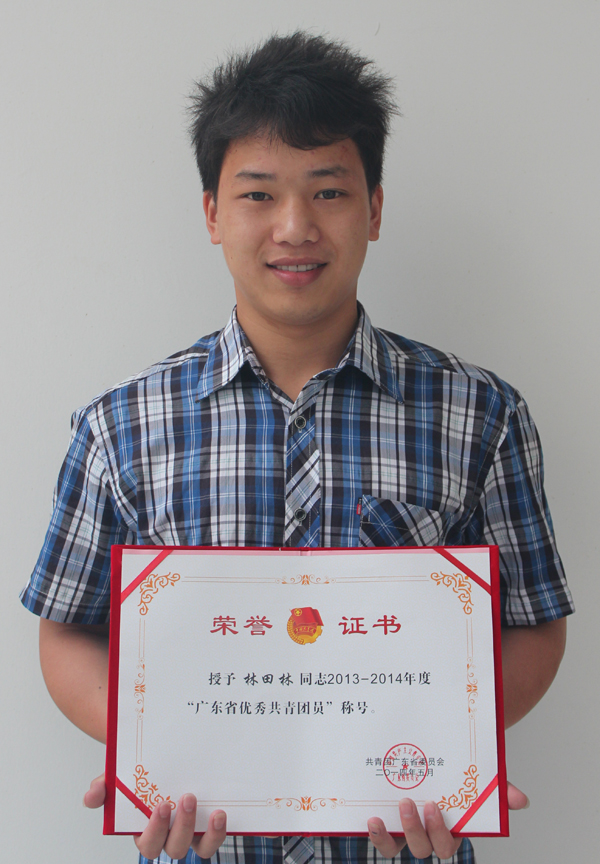 2014年5月4日,廣東團(tuán)省委發(fā)文表彰"2013-2014年度廣東省優(yōu)秀團(tuán)員、優(yōu)秀團(tuán)干部、五四紅旗團(tuán)委"。我校林劍忠、林田林等兩名共青團(tuán)員被評(píng)為2013-2014年度"廣東省優(yōu)秀共青團(tuán)員"。