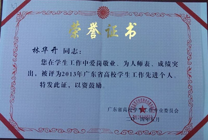 林華開老師榮獲"廣東省高校學(xué)生工作先進(jìn)個人"