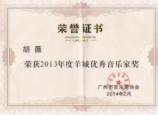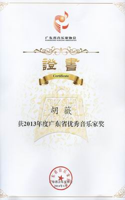 6月6日上午,人文藝術(shù)學(xué)院胡薇老師參加了由廣州市音樂(lè)家協(xié)會(huì)在廣州市文聯(lián)會(huì)議廳舉辦的"2013年度羊城優(yōu)秀音樂(lè)家頒獎(jiǎng)典禮",這是胡薇老師繼連續(xù)8年榮獲"廣東省優(yōu)秀音樂(lè)家獎(jiǎng)"之后再次被廣州市音樂(lè)家協(xié)會(huì)授予"2013年度羊城優(yōu)秀音樂(lè)家獎(jiǎng)"。