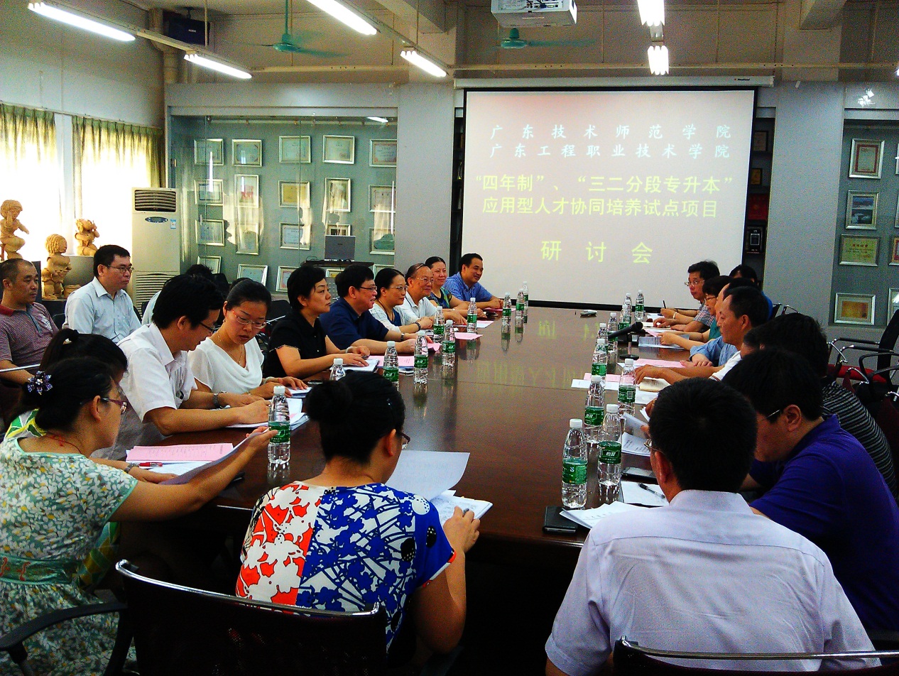 6月19日,勞漢生校長率團訪問廣東技術(shù)師范學院,并簽訂兩校專本銜接協(xié)同育人試點補充協(xié)議。廣東技術(shù)師范學院校長王樂夫、副校長許玲、教務處處長黃秋文以及專本銜接專業(yè)院領(lǐng)導和專業(yè)負責人,我校校長勞漢生、校務委員張新政、教務處處長肖萍、副處長吳文豐、外語經(jīng)貿(mào)學院院長邢植朝以及相關(guān)專業(yè)的負責人等出席了研討會。雙方就進一步建立友好合作關(guān)系,協(xié)同培養(yǎng)應用型本科人才進行了深入的交流。
