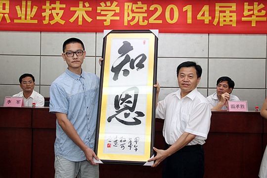學(xué)校黨委溫孝勝副書(shū)記宣讀《2014屆優(yōu)秀畢業(yè)生表彰決定》,并由溫孝勝副書(shū)記、李軍副書(shū)記、李艇副校長(zhǎng)、徐啟揚(yáng)副校級(jí)干部為優(yōu)秀畢業(yè)生頒發(fā)榮譽(yù)證書(shū)。最后,由勞漢生校長(zhǎng)頒發(fā)畢業(yè)證書(shū)。