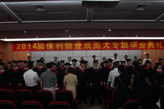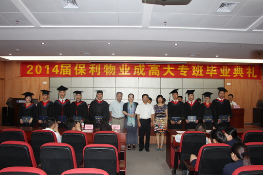 7月5日上午,我校2014屆保利物業(yè)成高大專班畢業(yè)典禮在圖書館學(xué)術(shù)報告廳隆重舉行。出席典禮的領(lǐng)導(dǎo)有:保利物業(yè)管理有限公司黎家河總經(jīng)理、鄧惠民副總經(jīng)理等八位高層領(lǐng)導(dǎo),我校黨委副書記李軍博士、校務(wù)委員張新政教授,以及繼續(xù)教育學(xué)院、管理工程學(xué)院相關(guān)領(lǐng)導(dǎo)、教師代表和2014屆保利物業(yè)成高大專班畢業(yè)生等共計一百多人參加了典禮。典禮由繼續(xù)教育學(xué)院院長徐文澤博士主持。