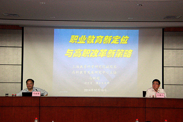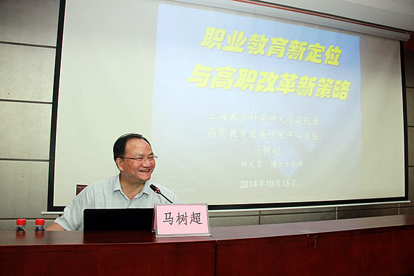 10月16日下午,國家知名職教專家、上海教育科學(xué)研究院副院長、高職教育研究發(fā)展中心主任馬樹超研究員應(yīng)邀到我校作《職業(yè)教育新定位與高職改革新策略》專題報告。校長勞漢生教授主持會議,全體校領(lǐng)導(dǎo)、校務(wù)委員,學(xué)校中級及以上職稱教師,八級及以上行政人員參加了報告會。