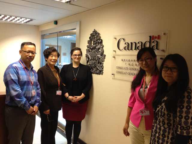 加拿大駐廣州總領(lǐng)事館副領(lǐng)事Fiona Hawkshaw女士及貿(mào)易專員Connie Li女士熱情接待了我校國際學(xué)院李紅院長、韓立芳副院長、外語經(jīng)貿(mào)學(xué)院劉衛(wèi)星老師。她們首先對我校成功承辦了"中國(廣東)-加拿大應(yīng)用技術(shù)與職業(yè)院校對接會(huì)"大為稱贊。隨后,雙方就中加師生短期交流、游學(xué),進(jìn)而開展多方面多層次的學(xué)術(shù)交流、師資培訓(xùn)、師生互訪、聯(lián)合應(yīng)用科研、中加雙向流動(dòng)學(xué)習(xí)/帶薪實(shí)習(xí)等等的合作進(jìn)行了深入的探討。交流在歡快友好的氣氛中結(jié)束,并合影留念。副領(lǐng)事Fiona Hawkshaw女士又發(fā)出邀請,于11月17日上午為我校約見加拿大倫敦教育中心負(fù)責(zé)人。