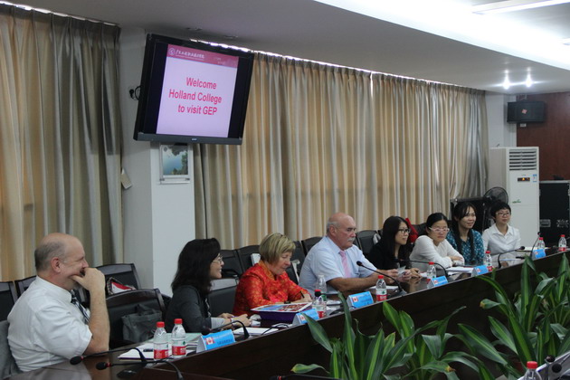 荷蘭學院國際部代表Jolene Chan女士詳細地介紹了荷蘭學院的地理位置、專業(yè)設置、學習生活環(huán)境等情況,注重介紹了與國內地方政府、高校搭建了多年的合作經驗。Brian C.McMillan校長表示感謝學校領導的熱情會見,認為兩校高層的直接對話更有利于項目合作的推動,他期待兩校共同努力,將兩校的合作項目落實做好。