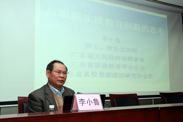 廣東省人民政府特聘參事、廣東省高校思想政治理論研究會會長李小魯,廣東省教育廳思政處處長袁本新博士、我校黨委書記劉潔、校長勞漢生、副校長李艇等出席了19日的開幕式。開幕式由勞漢生校長主持,黨委書記劉潔致歡迎辭,她對省廳、研究會領(lǐng)導(dǎo)對我們學(xué)校思想政治理論課的重視和各位專家學(xué)者的到來表示感謝和歡迎。李小魯會長和袁本新處長也分別作了重要講話。袁本新處長充分肯定了我校在思政課實踐教學(xué)中所做的一系列改革和探索。李小魯會長指出,我校在思想政治理論課實踐教育中敢于創(chuàng)新、敢于突破,并取得卓有成效的成績,源于我校黨政領(lǐng)導(dǎo)的高度重視、全體思政課教師的辛勤努力,是全省思想政治理論課實踐教學(xué)的典范。隨后,李小魯會長結(jié)合職業(yè)教育發(fā)展的新形勢,作了題為"高職院實踐教學(xué)創(chuàng)新的思考"專題報告,提出了思政實踐教育的創(chuàng)新思考,研判了現(xiàn)代職業(yè)教育體系構(gòu)建下思政實踐教育的新要求,并運用"箱體運作理論"解構(gòu)了新形勢下德育實踐的過程,為職業(yè)教育思政教育內(nèi)涵發(fā)展提供了新思路。大會還請來廣東首位優(yōu)秀社會科學(xué)家、珠江學(xué)者、華南師范大學(xué)馬克思主義學(xué)院院長陳金龍博導(dǎo)作了關(guān)于"三個自信"的專題報告。