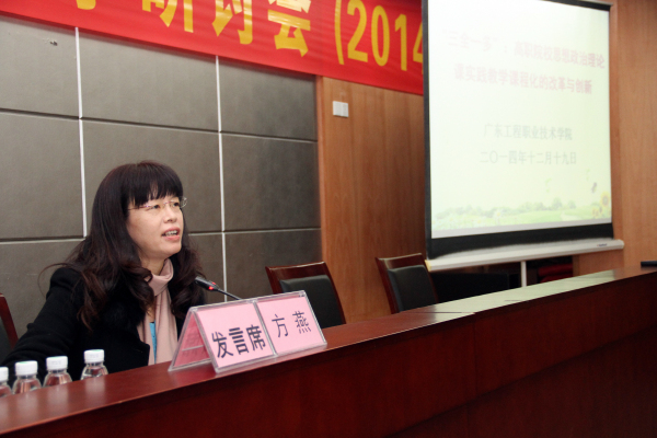此次大會還推舉了四所院校在會上作經(jīng)驗交流。方燕主任代表我校作了題為:"三全一多":高職院校思想政治理論課實踐教學(xué)課程化的改革與創(chuàng)新的發(fā)言。方主任的發(fā)言得到了兄弟院校的熱捧。
