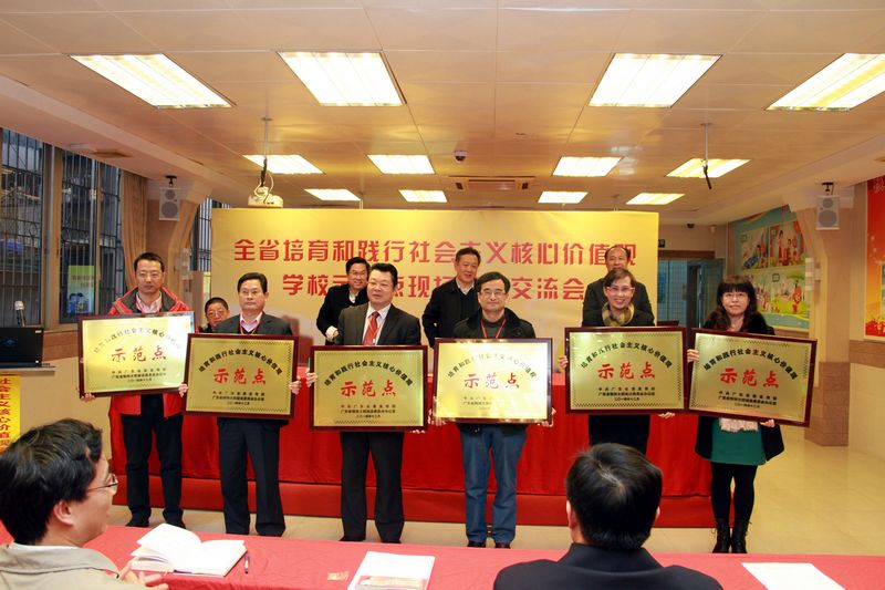 據(jù)悉,此次經(jīng)驗(yàn)交流會(huì)是為貫徹中央和省委關(guān)于培育和踐行社會(huì)主義核心價(jià)值觀的部署要求,根據(jù)省委宣傳部《關(guān)于創(chuàng)建培育和踐行社會(huì)主義核心價(jià)值觀示范點(diǎn)的實(shí)施方案》和《關(guān)于命名廣東省培育和踐行社會(huì)主義核心價(jià)值觀示范點(diǎn)的通報(bào)》文件精神,從全省上千所大中小學(xué)及中職院校中遴選出工作落實(shí)好、實(shí)踐方法新、育人效果好的學(xué)校,進(jìn)行全省培育和踐行社會(huì)主義核心價(jià)值觀示范點(diǎn)授牌暨經(jīng)驗(yàn)分享。