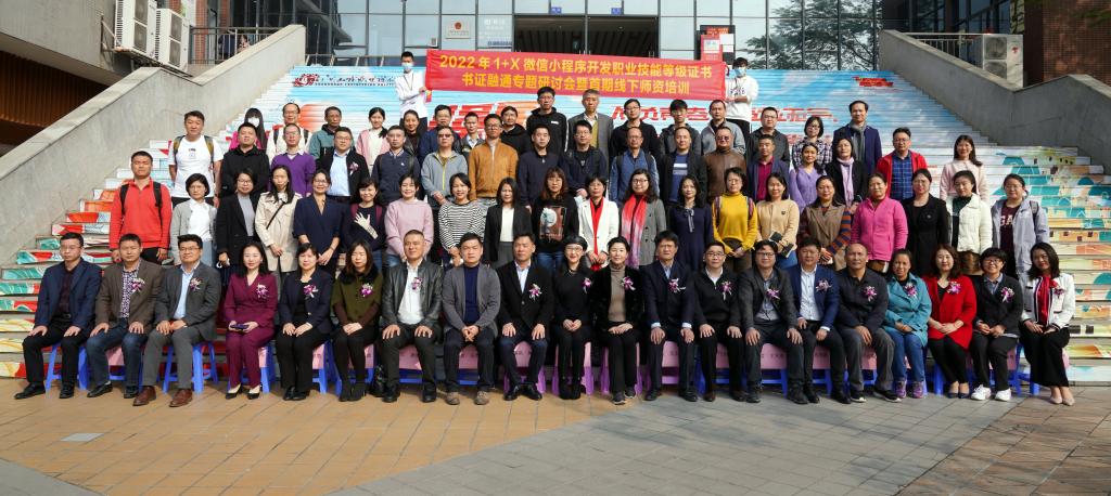 揭牌儀式結(jié)束,全體參會領(lǐng)導(dǎo)、嘉賓前往科技樓進(jìn)行參觀、交流,2022年1+X微信小程序開發(fā)職業(yè)技能等級證書書證融通專題研討會暨首期線下師資培訓(xùn)開班典禮在科技樓601舉行。培訓(xùn)時(shí)間為5天,通過考核可獲得相關(guān)證書。