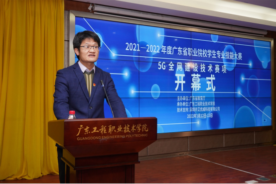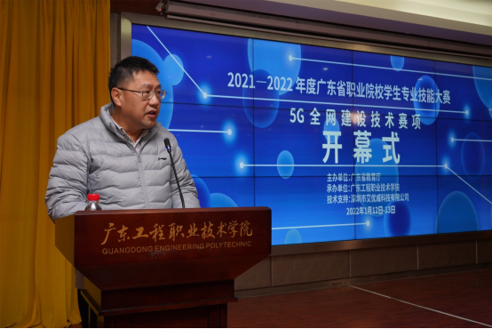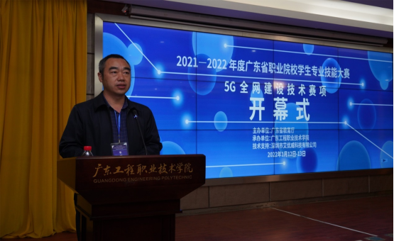 1月11日下午,開幕式在廣東工程職業(yè)技術(shù)學(xué)院圖書館一樓報(bào)告廳舉行。由學(xué)校吳志敏副校長主持,廣東機(jī)電職業(yè)技術(shù)學(xué)院余蔚荔教授任大賽督察員,學(xué)校黨委書記吳琦琳致辭。吳書記對大家的到來表示熱烈歡迎,指出職業(yè)技能競賽為廣大技能人才提供了展示精湛技能、相互切磋技藝的平臺,同時(shí)也能充分展示學(xué)校的教育教學(xué)成果,達(dá)到“以賽促學(xué)、以賽促教”的目的。我校承辦廣東省職業(yè)院校學(xué)生專業(yè)技能大賽5G全網(wǎng)建設(shè)技術(shù)賽項(xiàng)將以飽滿的熱情、高度的責(zé)任感,做好每一項(xiàng)工作,齊心協(xié)力把賽事辦好。