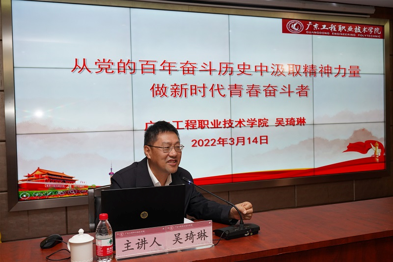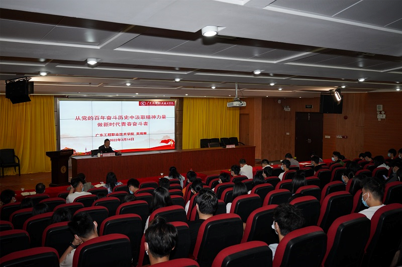 2022年3月14日,我校黨委書記吳琦琳在學(xué)校圖書館報告廳以“從黨的百年奮斗歷史中汲取精神力量,做新時代青春奮斗者”為主題講授了思政第一課。學(xué)校黨政辦領(lǐng)導(dǎo)、組宣部領(lǐng)導(dǎo)和馬克思主義學(xué)院的教師代表以及百多名同學(xué)聆聽了講課。