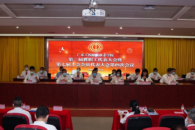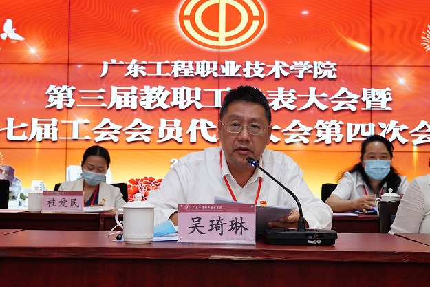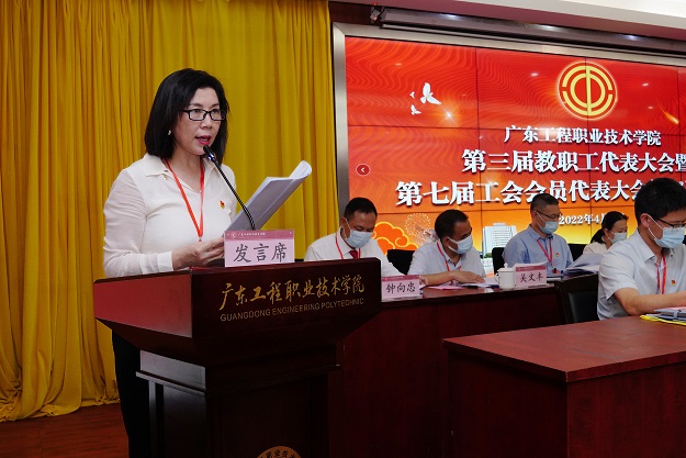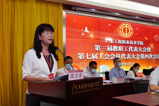 會議審議并表決通過了校長工作報告、工會工作報告、學(xué)校2021年財務(wù)預(yù)算報告、廣東工程職業(yè)技術(shù)學(xué)院“十四五”事業(yè)發(fā)展規(guī)劃、廣東工程職業(yè)技術(shù)學(xué)院教職工代表大會章程(修訂稿)、廣東工程職業(yè)技術(shù)學(xué)院廣州校區(qū)學(xué)生宿舍項目建設(shè)情況報告。書面審議了第三屆教職工代表大會暨第七屆工會會員代表大會第三次會議提案辦結(jié)情況及第四次會議提案征集情況報告、學(xué)校工會2021經(jīng)費使用情況報告;聽取了學(xué)校2021年財務(wù)決算報告。