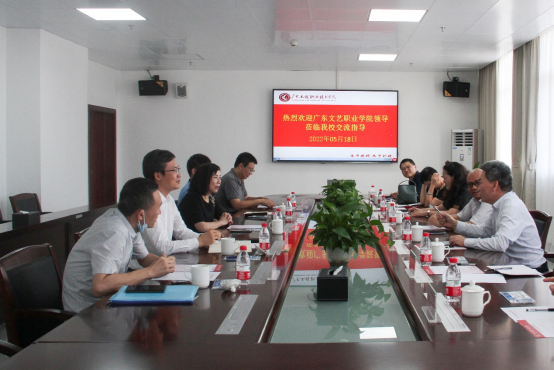 廣東文藝職業(yè)學(xué)院黨委副書記邱廣林、副校長(zhǎng)張丹丹、副校長(zhǎng)曾小力,我校副校長(zhǎng)吳志敏、副校長(zhǎng)張小廣以及兩校相關(guān)部門負(fù)責(zé)同志參加了交流。