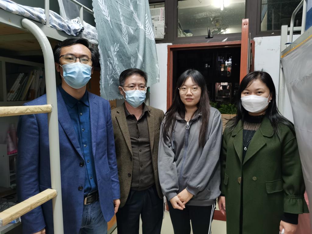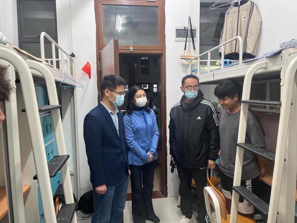 學校領導分別帶隊走訪各學院的宿舍,了解學生疫情期間的學習、生活情況,親切詢問是否遇到困難,有何需要解決的難題。引導學生樹立大局意識,積極配合國家疫情防控政策和學校防疫工作,做到理性應對,消除焦慮和不安,不造謠、不信謠、不傳謠。告知學生,學校各部門為了全體師生的安全健康和日常生活,正全力以赴,全面做好服務保障工作。