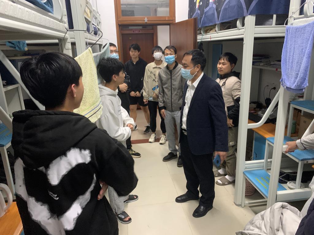 11月30日晚,學校黨委書記吳琦琳,黨委委員、副校長揭英榮、吳志敏、張小廣等校領導帶領在學校值守的中層干部、輔導員走訪學生宿舍,親切地與同學們談心談話,了解同學們的思想動態(tài),傾聽青年心聲。