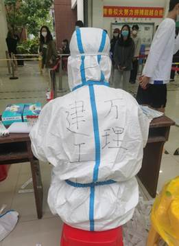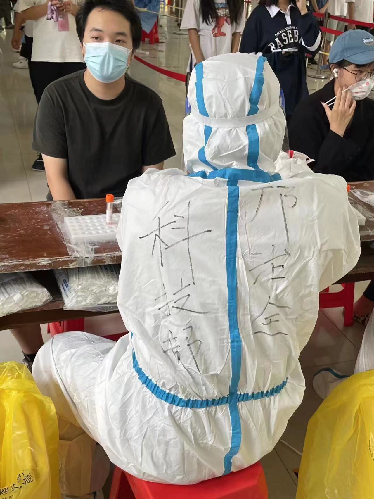 廣州校區(qū)核酸采樣志愿服務(wù)隊(duì)招募通知一經(jīng)發(fā)布,住在漁沙坦附近的教職工和駐校教職工踴躍報(bào)名,參加采樣培訓(xùn)并時(shí)刻待命。“今天你測了多少名學(xué)生?”“我今天打破了你之前保持的666人次記錄。”在志愿服務(wù)中,誰服務(wù)的學(xué)生的多,臉上的笑容明顯更燦爛。穿上防護(hù)服是暖心的志愿者,脫下防護(hù)服就又奔回各自崗位;課堂是他們的主場,核酸檢測也是他們的戰(zhàn)場。他們沒有豪言壯語,沒有推脫避讓;他們披上白色“戰(zhàn)袍”,用實(shí)際行動履行著“疫”不容辭的責(zé)任與擔(dān)當(dāng),詮釋了作為一名教育工作者、一名廣東工程人的責(zé)任與擔(dān)當(dāng)。