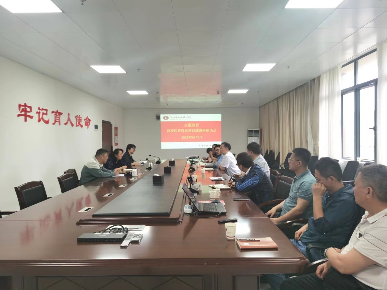 為貫徹落實黨的二十大精神和黨中央關(guān)于在全黨大興調(diào)查研究的決策部署,扎實開展學(xué)習(xí)貫徹習(xí)近平新時代中國特色社會主義思想主題教育,根據(jù)學(xué)校《關(guān)于深入開展調(diào)查研究工作的實施方案》相關(guān)要求,5月11日下午,學(xué)校黨委書記吳琦琳在省職教城校區(qū)主持召開“聚焦兩校區(qū)管理運(yùn)轉(zhuǎn)問題,拓寬學(xué)校高質(zhì)量發(fā)展戰(zhàn)略空間”專題調(diào)研座談會。學(xué)校省職教城校區(qū)各職能部門、各二級學(xué)院中層干部代表參加座談會。