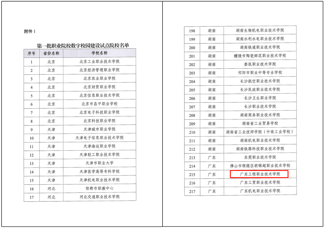 根據(jù)教育部職成司發(fā)布的《關于進一步推進職業(yè)院校數(shù)字校園建設試點的通知》,我校在學校黨委的正確領導下,在校內各單位的全力支持配合下,經(jīng)過1年多的持續(xù)建設,已于近期順利通過教育部驗收,成功入選第一批全國職業(yè)院校數(shù)字校園建設試點院校名單,此次我省共有深圳職業(yè)技術學院、廣東輕工職業(yè)技術學院等17所院校入選。