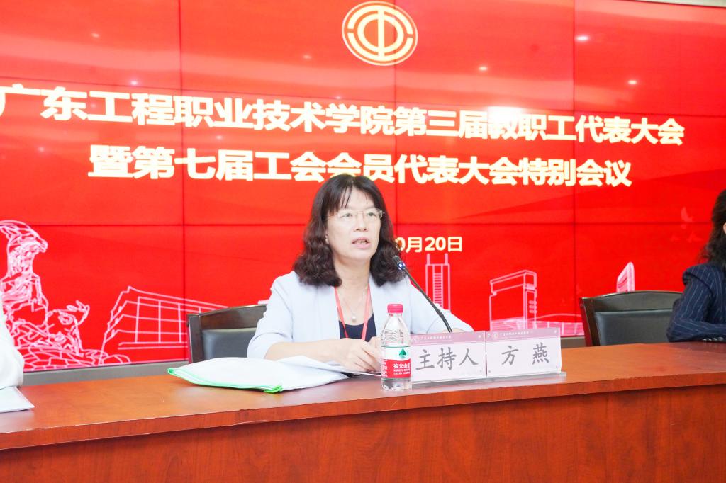 2023年10月20日下午,學校第三屆教職工代表大會暨第七屆工會會員代表大會第五次會議特別會議在廣州校區(qū)圖書館報告廳召開,專題審議《廣東工程職業(yè)技術(shù)學院職稱評審系列文件》(修訂稿)。會議由黨委副書記、工會主席方燕主持,黨委副書記、校長李麗等85名正式代表參加了會議,非代表的中層正職或部門負責人列席會議。