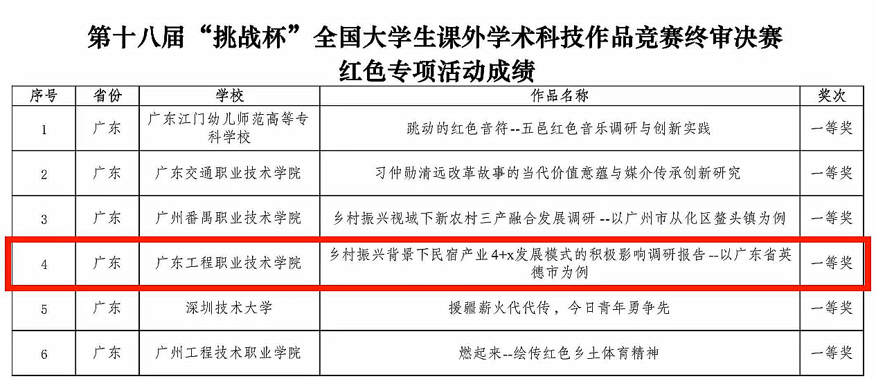 我校由酒店管理學院選送,由周琳、陳曉容、于斐涵等老師指導的參賽作品《鄉(xiāng)村振興背景下民宿產業(yè)4+x發(fā)展模式的積極影響調研報告——以廣東省英德市為例》榮獲國賽專項賽一等獎,比賽成績取得歷史性突破。