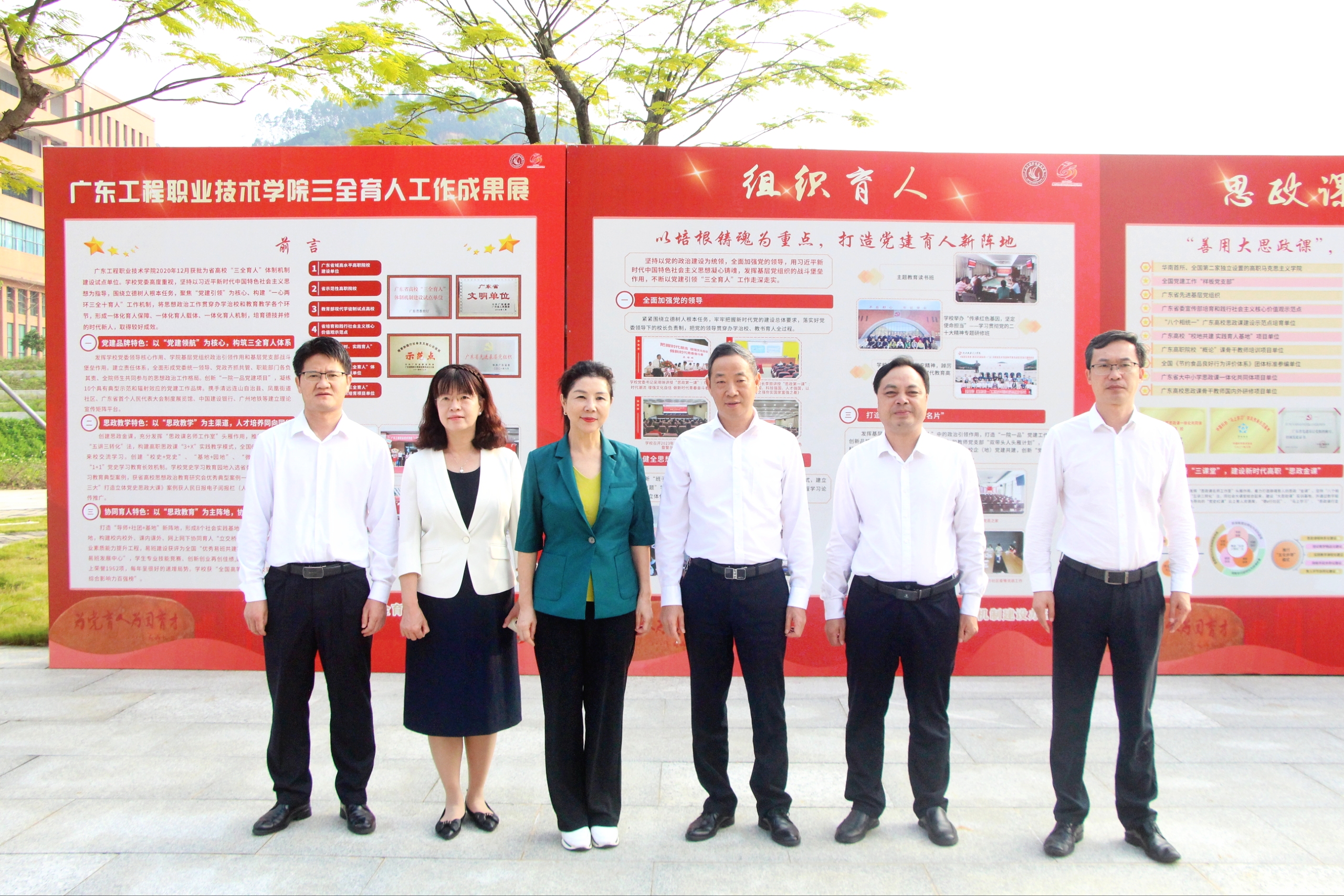 會(huì)后,與會(huì)代表觀摩了學(xué)校“立德樹人 三全育人”工作成果展。經(jīng)過三年的建設(shè)實(shí)踐,學(xué)校“三全育人”體制機(jī)制建設(shè)工作格局已全面形成,各領(lǐng)域有效發(fā)揮育人效能,夯實(shí)主體責(zé)任,構(gòu)建了具有工程特點(diǎn)的“十大育人體系”。建設(shè)期間,學(xué)校成立“三全育人”工作領(lǐng)導(dǎo)小組,組織召開專題推進(jìn)會(huì)三次,制作《廣東工程職業(yè)技術(shù)學(xué)院制度匯編》,編制《學(xué)生工作論文集和學(xué)生工作精品項(xiàng)目》、《學(xué)校“一院一品”黨建品牌項(xiàng)目》、《學(xué)校“一站式”學(xué)生社區(qū)建設(shè)工作方案》、《媒體關(guān)注》、《“立德樹人 三全育人”宣傳畫冊》、《2021-2023年師生榮譽(yù)匯編》、《學(xué)生工作德育案例、論文集》、《學(xué)校“三全育人”體制機(jī)制建設(shè)成效宣傳片》等一批育人成果,形成一套科學(xué)完善的制度安排、工作機(jī)制、工作體系。