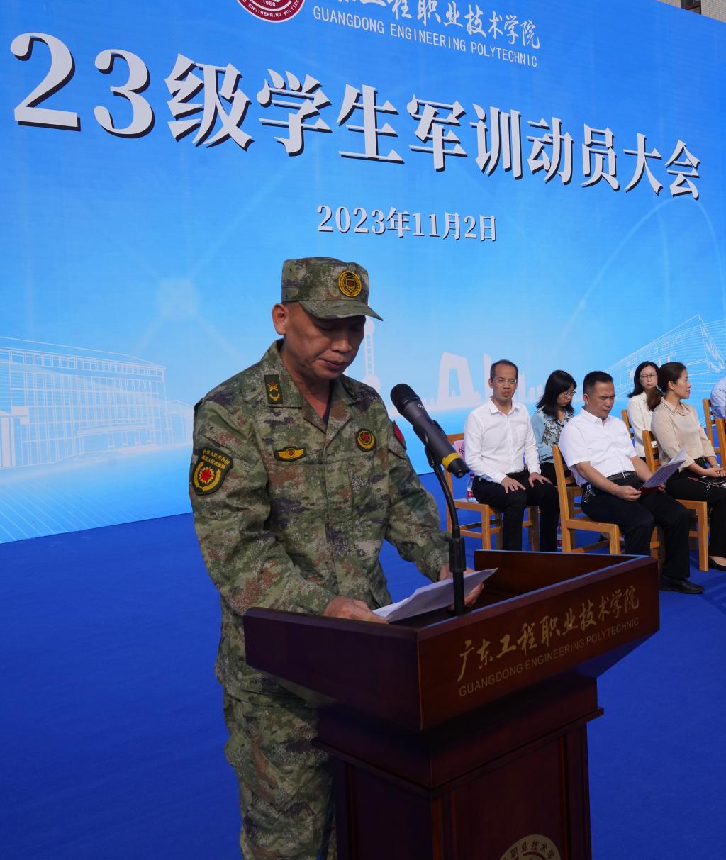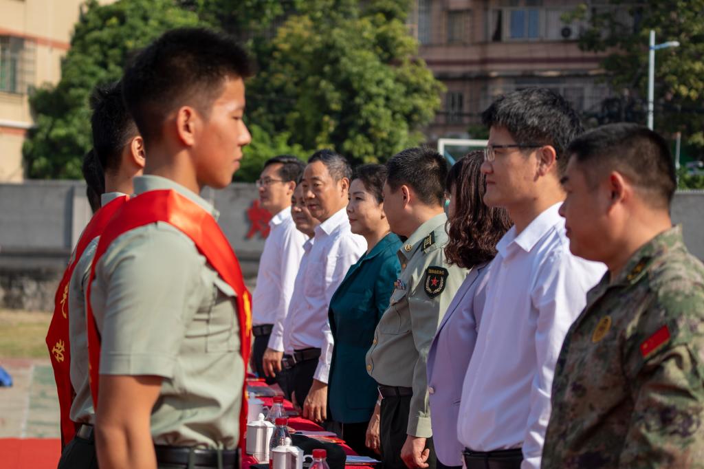 南沙區(qū)武裝部顏俊政委、欖核鎮(zhèn)武裝部陳廣清部長代表教官發(fā)言,承諾嚴格要求,按綱施訓,確保高質(zhì)量完成軍訓任務。希望參訓學生服從命令,聽從指揮,團結同學,嚴守紀律,吃苦耐勞,勤學苦練,鑄就青春向黨的赤子之心,展現(xiàn)令行禁止的軍人氣魄,養(yǎng)成使命必達的軍人作風。