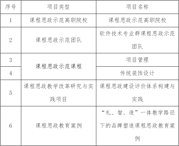 近日,廣東省教育廳發(fā)布了《關(guān)于公布2023年省高職院校課程思政示范計劃項目立項名單的通知》,我校獲批立項2023年省高職院校課程思政示范高職院校,另有4大類5個項目獲省課程思政示范計劃立項,其中課程思政示范團(tuán)隊1個、課程思政示范課程2門、課程思政教學(xué)改革研究與實踐項目1項和課程思政教育案例1個。