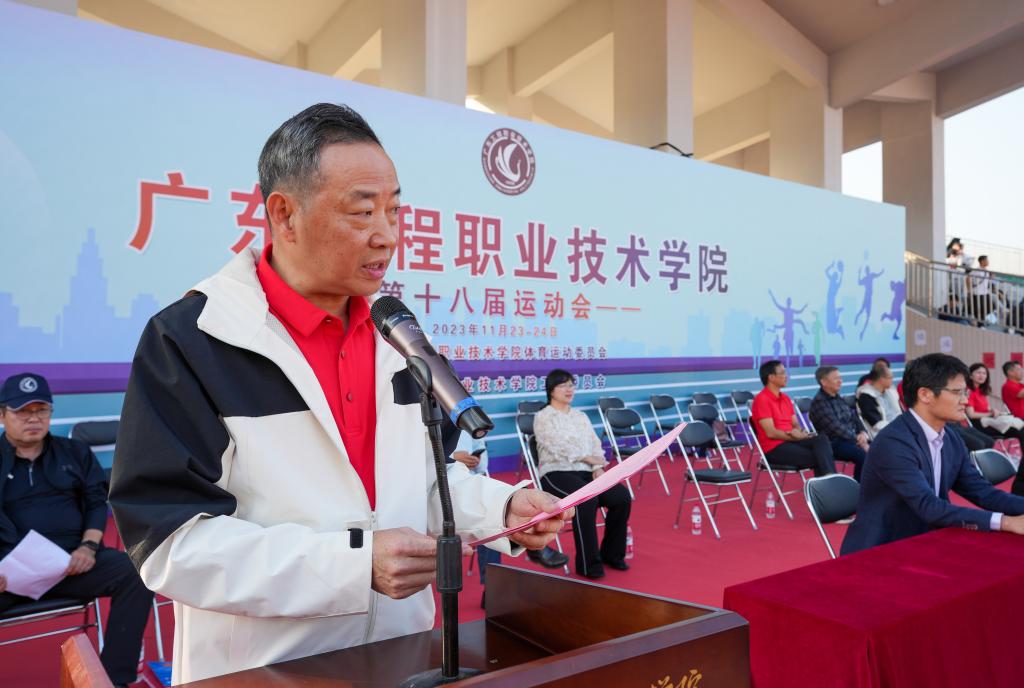 我校第十八屆校運會于11月17日和11月23日分別在廣州和清遠兩個校區(qū)拉開帷幕。開、閉幕式在清遠校區(qū)新田徑場隆重舉行,學校領導、中層干部以及二級學院教師和學生代表出席開、閉幕式,大會由吳志敏副校長主持,學校黨委副書記、紀委書記徐振昌同志致開、閉幕詞,校長李麗同志宣布廣東工程職業(yè)技術學院第十八屆運動會開幕。