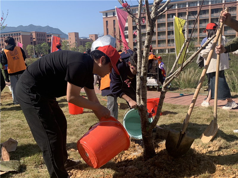 學(xué)校各級(jí)黨組織、各部門、二級(jí)學(xué)院組織師生在校園各綠化規(guī)劃處、各學(xué)院樓旁開展植樹,校園處處增綠,每個(gè)人以自覺行動(dòng)打造綠美校園。大家辛勤勞動(dòng),施肥添土,共同開展養(yǎng)樹植樹。整個(gè)校園場(chǎng)面熱鬧溫馨,充滿歡聲笑語。新栽的桃花樹花開滿樹,春意盎然,煥發(fā)出勃勃生機(jī),為綠色校園增添了一抹姹紫嫣紅,讓春色更加明媚多彩。