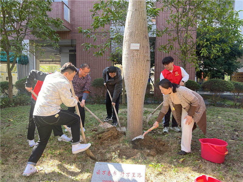 春風(fēng)拂面春意暖,不負(fù)時(shí)光與時(shí)行。時(shí)值第46個(gè)植樹節(jié),為深入貫徹落實(shí)習(xí)近平生態(tài)文明思想,牢固樹立和踐行綠水青山就是金山銀山的理念,全面推進(jìn)綠美廣東生態(tài)建設(shè),積極響應(yīng)廣東省委、省教育廳開展義務(wù)植樹活動(dòng)的號(hào)召,3月12日,學(xué)校校長(zhǎng)李麗等全體校領(lǐng)導(dǎo)帶領(lǐng)師生在學(xué)校開展“綠美校園”植樹活動(dòng),以實(shí)際行動(dòng)建設(shè)綠色花園校園。