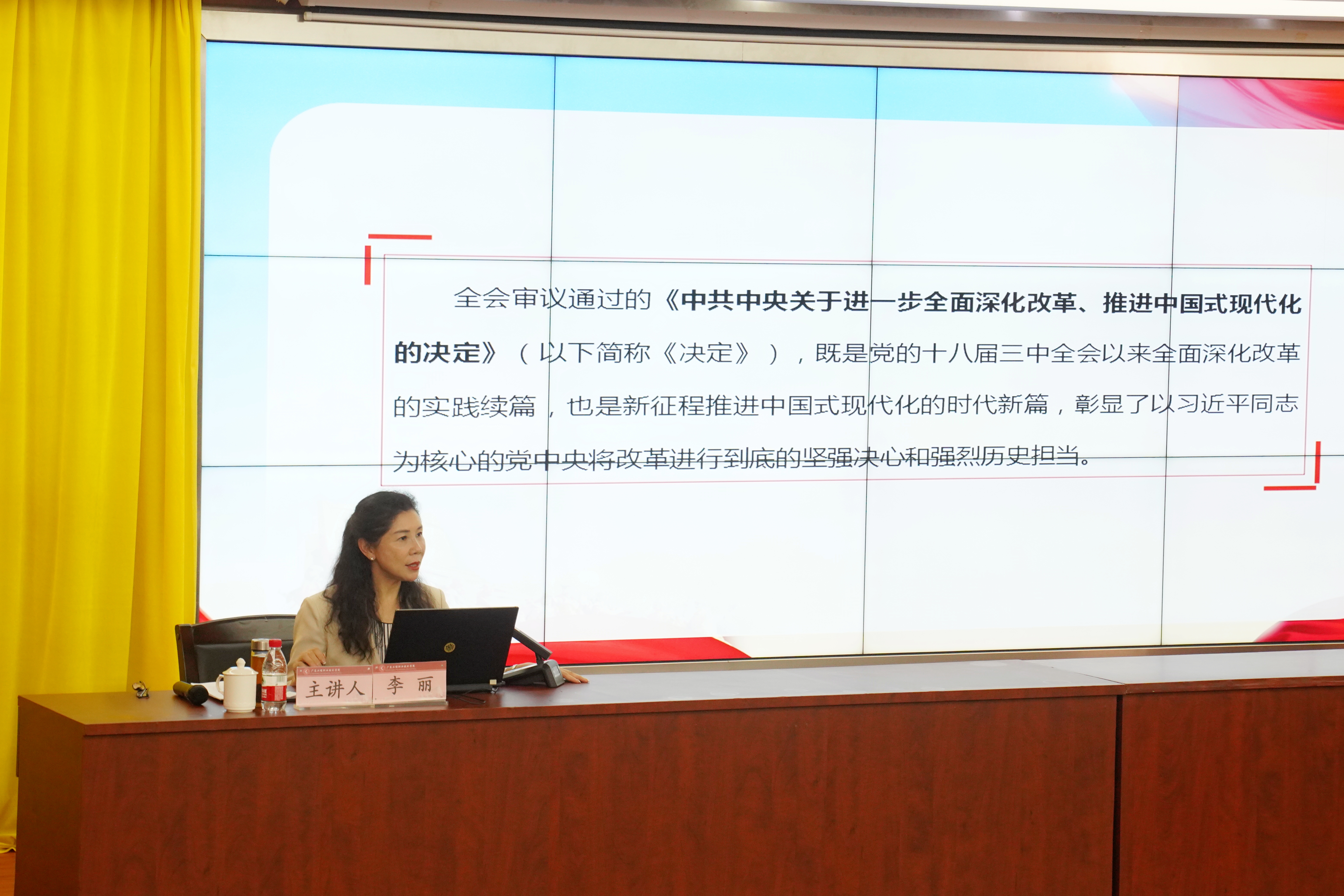 為學習貫徹黨的二十屆三中全會精神,引導青年學生在進一步全面深化改革中肩負起新時代使命,2024年9月19日、9月25日,我校黨委副書記、校長李麗教授以“進一步全面深化改革與新時代青年使命”為主題,分別在廣州校區(qū)、清遠校區(qū)講授了“思政第一課”。馬克思主義學院院長郭華生教授主持本次專題授課,學校宣傳部(武裝部)負責人、馬克思主義學院教師代表以及270多名大一新生聆聽了李麗校長精彩的“思政第一課”。